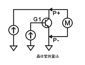 晶体管的测量方法如下图从晶体管的基极 ( Base )送脉波电压,由于晶体管工作于饱和状态 ( Saturation Status )时集极与射极之间所测量的电压 ( Vce )会小于0.2V以下,因此可藉之来辨别晶体管的好坏。