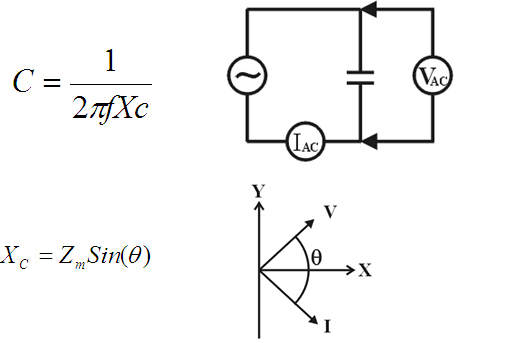 如上图所示应用运算放大器 ( OPA )之反相放大原理:Vo = -V * R / Xc,其中Xc =1/ ( 2fC )乃电容所产生的电抗,f为交流定电压的频率,再以角加速度『 = 2f』来代表,则可由公式:C = -Vo / ( V * * R ),来计算出电容之值 定电流测量 ( MODE C )