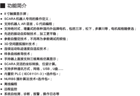 4、scara机器人应用的定制化开发 本公司在自动化行业积累多年,积累了成熟稳定的关于运动控制、IO控制、自动化检测等方面的技术成果和经验,依托scara机器人,完成客户要求的scara的控制温能。